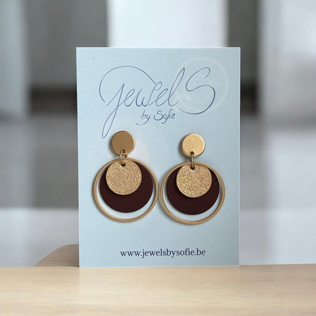 Ontdek deze elegante goud met bruine oorbellen met een modern rond design. Perfect voor zowel dagelijkse looks als feestelijke gelegenheden. Handgemaakt, lichtgewicht en tijdloos – voeg een vleugje klasse toe aan elke outfit!