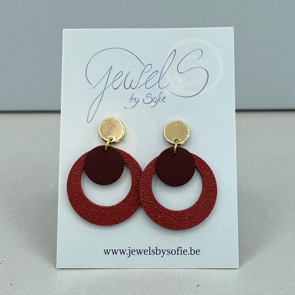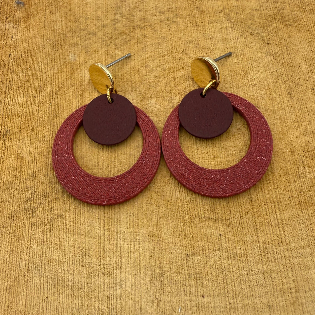 Laat je stijl spreken met deze unieke 3D-geprinte statement oorbellen in een stijlvolle combinatie van goud en bordeaux.