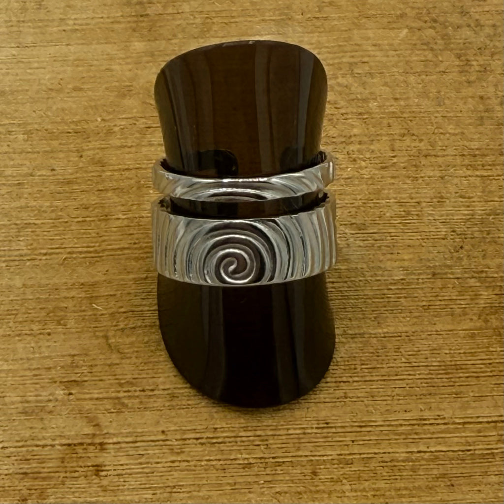 Ring zilverkleurig uit roestvrij staal, ring is aanpasbaar in grootte.