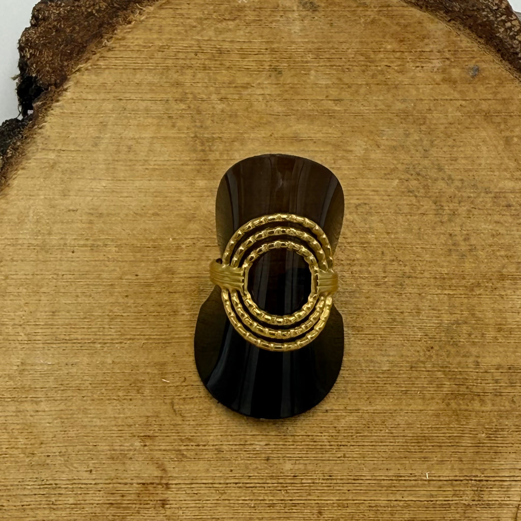 Ring goudkleurig uit roestvrij staal, ring is aanpasbaar in grootte.