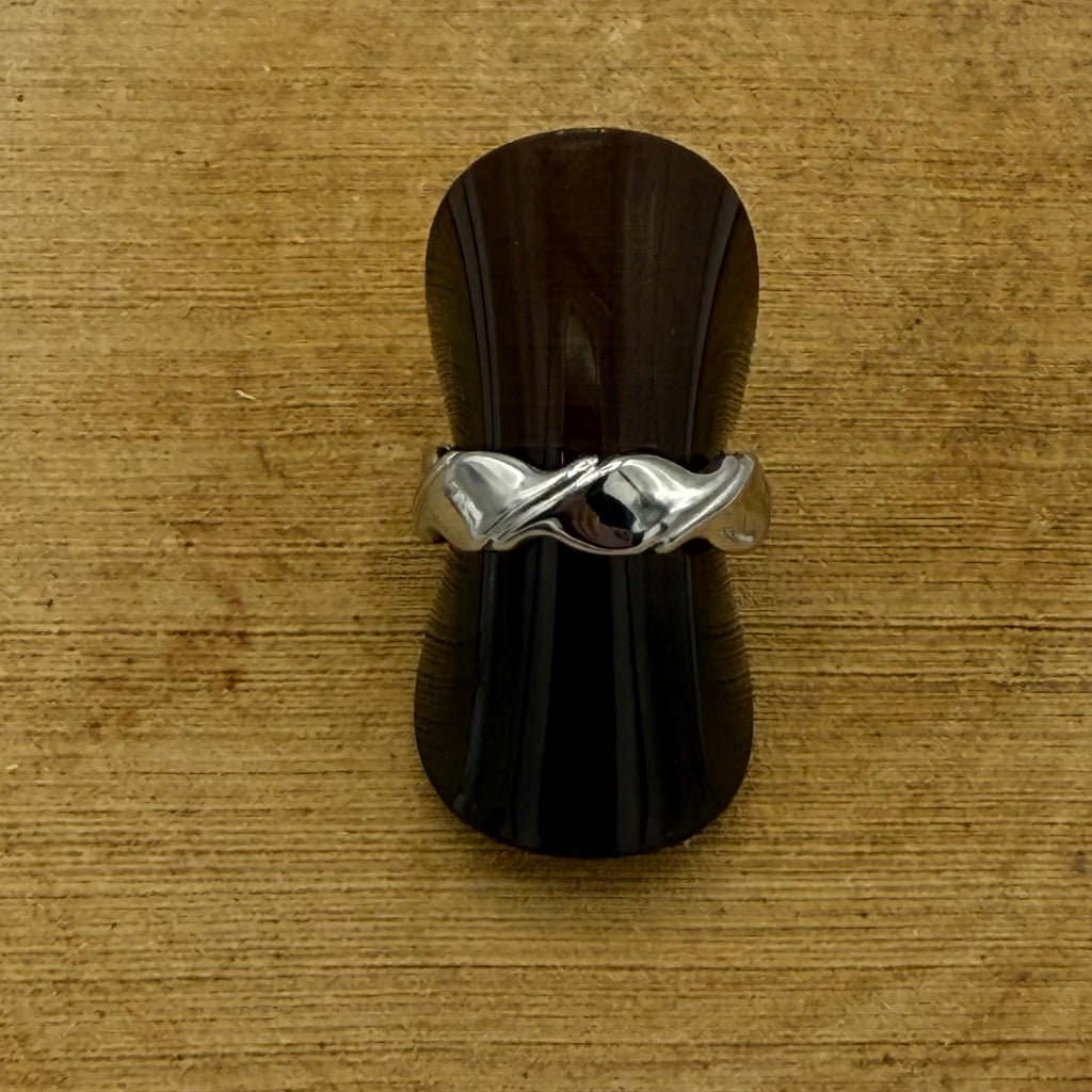 Roestvrijstalen zilverkleurige ring. Ring is aanpasbaar in grootte.